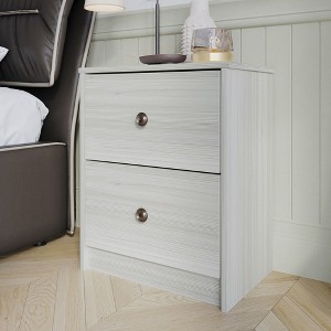 Upgrade your bedroom with our timeless engineered wood with veneer nightstand, an essential piece designed to complement any decor style. Featuring two metal roller glide drawers, this nightstand offers ample storage for your bedside essentials. The spacious top surface is perfect for placing your alarm clock, glasses, mobile phone, water bottle, and other items within easy reach. Crafted from engineered wood with veneer, this nightstand guarantees stability and durability to last for years. Its streamlined design and modern style make it the perfect addition to any bedroom setting. Full assembly is required, and all necessary hardware is included in one convenient package. Choose from three elegant color options: classic white, sophisticated dark gray, or contemporary light gray, and enhance your bedroom with this must-have nightstand.