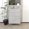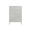 Elevate your space with our Four-Tier Wooden Chest, a perfect harmony of style and utility. Featuring four tiers of wooden chest drawers, each equipped with pre-assembled metal slides, this exquisite piece ensures smooth and hassle-free operation. Supported by four elegantly golden metal legs, it not only adds stability but also enhances the enduring durability of this timeless and evergreen furniture. The classic gold drawer handles provide an elegant finishing touch, adding a touch of sophistication to the overall design. Crafted from a combination of solid wood and engineered wood, this drawer offers the perfect blend of strength and resilience. The generously spacious drawers effectively conceal clutter, creating a neat and organized look in your space. Assembly is a breeze, thanks to the included sorting hardware pack and assembly instructions. Plus, the entire package conveniently ships in one box, streamlining the delivery process. Choose from a selection of classic colors - Black, White, Silver, and Light Grey - to seamlessly match your decor. Maintenance is easy, making this drawer a practical and stylish addition to your home. Elevate your living space with style and convenience.
