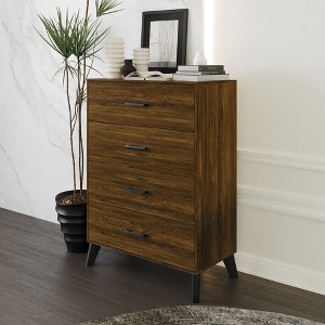 Discover the perfect blend of elegance and functionality with our Four-Tier Wooden Chest. Crafted with meticulous attention to detail, this chest features four tiers drawers, each equipped with pre-assembled metal slides, guaranteeing smooth and hassle-free operation. Supported by four gracefully tapered solid wood legs, it exudes stability and enduring durability. Combining the richness of solid wood with the reliability of engineered wood, this drawer is designed to last. Its generously spacious drawers provide ample room for all your storage needs, effortlessly concealing clutter and creating a tidy, organized space. Maintenance is a breeze, ensuring that its beauty stands the test of time. Assembly is straightforward with the included hardware pack and clear instructions, all packaged neatly in one box for your convenience. Available in a range of attractive colors, including Brown, Dark Grey, and Light Grey, with sleek Black finishing on the handles and legs, this drawer seamlessly blends classic design with a modern touch. Elevate your living space with our Four-Tier Wooden Chest – a perfect marriage of style, utility, and enduring quality.