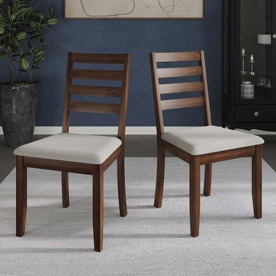 ChaletPosh Brown Wooden Dining Chair With Warm Grey Cover Set of 2