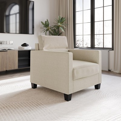 Elevate your living space with our stylish and versatile one-seater armchair. This armchair features clean lines and a sleek design that effortlessly complements various decor styles, adding a timeless and versatile look to your home. Not just a visual delight, it offers a relaxing experience with well-padded seats and supportive backrests. The black-finished legs provide reliable support while adding a touch of sophistication. Upholstered with 100% linen fabric, this armchair is easy to care for and remarkably durable, ensuring longevity. It conveniently ships in one box and requires easy assembly. Perfect for smaller living areas or cozy nooks, this one-seater armchair is available in a range of stylish colors: Beige, Dark Beige, Grey, Light Blue, and Blue. Redefine your space with this exquisite armchair, offering both style and comfort, creating a cozy and inviting nook for relaxation and style. Note: Essential assembly components may be concealed within the furniture (e.g. beneath sofa cushions). Please check all compartments, including zipped areas, to locate all parts before assembly.