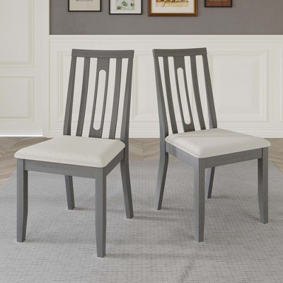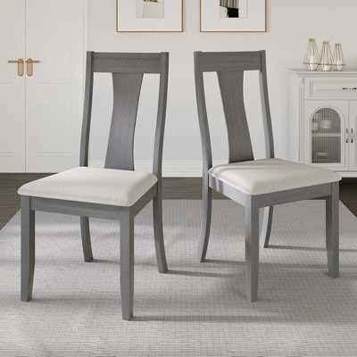 ChaletPosh Wooden Dining Chair With Warm Grey Cover Set of 2