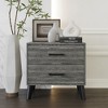 Elevate your bedroom's ambiance with our contemporary rustic nightstand. Crafted with a seamless blend of style and functionality, this piece embodies sophistication and convenience. Complementing your existing furniture, it creates a harmonious, cohesive look. Two spacious drawers and a generously sized top provide easy access to your essentials, while cleverly designed compartments keep everything organized and clutter-free. Meticulously crafted from durable solid and engineered wood, this nightstand ensures both lasting durability and timeless charm. The black-finished wooden legs add an extra touch of elegance while offering unwavering stability for your peace of mind. With hassle-free assembly instructions included, this nightstand arrives in a single package. Choose from three versatile colors Ð Brown, Dark Grey, and Light Grey Ð to effortlessly match your style. Elevate your bedroom's elegance and practicality with this versatile addition. Discover your dream nightstand now and redefine your space.