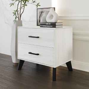 Elevate your bedroom's ambiance with our contemporary rustic nightstand. Crafted with a seamless blend of style and functionality, this piece embodies sophistication and convenience. Complementing your existing furniture, it creates a harmonious, cohesive look. Two spacious drawers and a generously sized top provide easy access to your essentials, while cleverly designed compartments keep everything organized and clutter-free. Meticulously crafted from durable solid and engineered wood, this nightstand ensures both lasting durability and timeless charm. The black-finished wooden legs add an extra touch of elegance while offering unwavering stability for your peace of mind. With hassle-free assembly instructions included, this nightstand arrives in a single package. Choose from three versatile colors – Brown, Dark Grey, and Light Grey – to effortlessly match your style. Elevate your bedroom's elegance and practicality with this versatile addition. Discover your dream nightstand now and redefine your space.