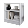 - One open cubby on the top provides a small storage space