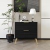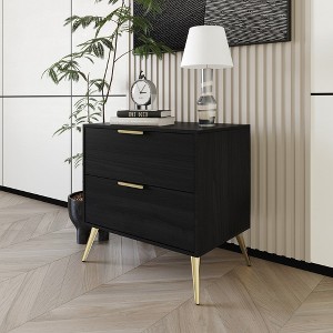 Fancy up your bedroom vibes with with our timeless and versatile nightstand, designed to complement your dream bedroom aesthetic effortlessly. This stunning piece effortlessly harmonizes with your existing bedroom furniture, creating a cohesive and stylish atmosphere. With two spacious drawers, it offers ample storage space for your belongings, helping you keep your bedroom tidy and organized. Crafted from a combination of solid and engineered wood, this nightstand ensures both stability and durability, promising a long-lasting addition to your bedroom. Supported by four sturdy gold metal legs, it not only adds charm but also enhances stability and durability. The modern gold drawer handles serve as a luxurious finishing touch, adding an elegant element to the overall design. Additionally, the top surface of the nightstand provides a convenient space to place essential items like a table lamp and other bedroom necessities. Cleaning and maintenance are a breeze, making this nightstand a practical choice for your bedroom. It ships in one box and comes with clear instructions and a sorting hardware pack, ensuring easy assembly. Available in classic colors – Black, White, Silver, and Grey – you have the freedom to choose the option that best suits your personal style and complements your existing bedroom decor.
