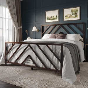 Indulge in a peaceful night's sleep with this exceptional metal bed, crafted from high-quality metal and equipped with 12 sturdy slats that provide superior comfort and adaptability to various amounts of weight. With a geometric slatted design headboard and footboard, this metal bed exudes a modern and stylish appeal that will add an elegant touch to your bedroom decor. The ample storage space beneath the bed ensures that your bedroom stays tidy and organized while making it incredibly easy to clean under the bed. In addition, the bed comes with extra center solid wood legs that provide added support, enabling it to sustain heavier weights without causing any damage to the frame. To ensure longevity, the metal bed is finished with a surface powder coat that effectively prevents rusting and requires minimal maintenance and keeping it looking as good as new for a long time to come. The bed ships in one box, making it a hassle-free purchase. Box spring is not require for this metal bed frame. Available in classic shades of Black, White, and Brown, this metal bed is available in a range of sizes, including Twin, Full, Queen, and King, offers a range of options to suit your personal taste and room size. So, create a cozy and stylish bedroom atmosphere with this impressive metal bed, and enjoy a peaceful night's sleep like never before!
