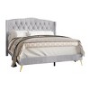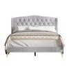 Transform your bedroom with the timeless elegance of this luxurious upholstered bed. Crafted with a solid and engineered wood frame, it features soft velvet upholstery that exudes sophistication, enhanced by crystal button tufting and a graceful wingback design. The camelback headboard, padded with foam, provides both style and comfort, making it the perfect spot for reading or relaxing. The diamond tufted detailing adds a touch of glamour, while the wingback design elevates the aesthetic appeal, creating a cozy yet dynamic focal point for your space. Available in versatile shades of silver grey, navy blue, and light grey, this bed effortlessly complements any decor and bedding ensemble. Built with a durable wooden slat system, it offers sturdy support without the need for a box spring. Conveniently shipped in one compact box with clear assembly instructions, this bed combines practicality with luxurious charm for an effortlessly chic bedroom upgrade.