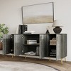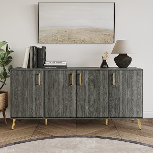 Upgrade your space with this versatile multipurpose cabinet, featuring six spacious shelves to accommodate all your storage needs. Constructed from durable engineered wood with a sleek veneer finish, this piece ensures long-lasting strength and stability. Perfect for any room, it serves as a sideboard, buffet, or storage solution. Its wide top is ideal for showcasing decorative items, while the gold metal legs and center support leg offer extra stability. The chic gold door handles add a touch of elegance to your home decor. Available in Light Grey, Dark Grey, and Brown, this cabinet ships with easy assembly instructions for hassle-free setup.