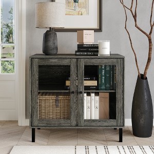 Enhance your living space with this stylish and functional multipurpose cabinet. It features two spacious shelves, a wide top surface, and two door cabinets with transparent acrylic panels, perfect for storing and displaying décor. The sleek round black handles add a modern touch, while the sturdy construction of engineered wood with a durable veneer finish ensures lasting quality. Supported by four robust metal legs for superior stability, this cabinet is available in four elegant finishes: Black, White, Dark Grey, and Light Oak. Easy to assemble with clear instructions, it ships in one compact box for your convenience.