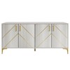 - Four large door cabinets with glam gold strips, adding luxury and sophistication to your home