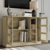 - Three large door cabinets with sleek transparent acrylic inserts, showcasing and organizing your items with ease