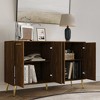 This multipurpose cabinet combines style and functionality, making it a must-have in any room. Made from solid and engineered wood, it provides exceptional durability for years to come. With four generous shelves, it offers plenty of storage for all your needs. The cabinet is supported by gold metal legs and a center support leg for maximum stability. Two double-opening doors ensure easy access to your items, and the modern gold handles enhance its sleek design. Available in Light Grey, Dark Grey, and Brown finishes, it suits various decor themes. Ships in one compact box with clear assembly instructions for easy setup.