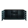 Transform your entertainment area with our sleek and functional TV stand, offering a spacious 47-inch top surface for your television and decor. Crafted from a combination of solid and engineered wood, this stand ensures long-lasting durability while exuding a modern, stylish appeal. It features two media compartments, each with two cable management holes, keeping wires organized and out of sight for a clean, clutter-free look. Two roomy cabinets with knob handles provide ample storage for media devices and accessories, helping you maintain a tidy, organized space. With a full floor base for added stability, this versatile TV stand is available in Blue, Green, Light Brown, Grey Oak, and White finishes, allowing it to seamlessly blend with any interior. Assembly is quick and easy with included instructions, and the stand ships conveniently in one box. Elevate your living room or entertainment area with this chic, practical TV stand that combines style and functionality.