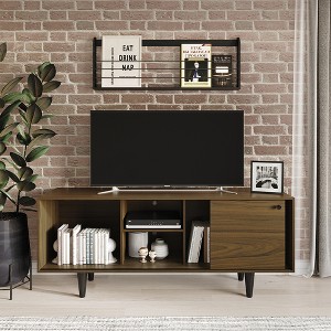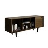 Enhance your living space with our elegant 54-inch TV stand, designed to blend practicality and timeless style. Built from solid and engineered wood, this stand offers both durability and refined aesthetics for a lasting impression. Two cable-managed compartments make it easy to organize your media devices, while the sliding-door storage shelves with knob handles provide convenient, concealed storage with a touch of sophistication. Supported by four sturdy legs, this stand ensures stability in any room, whether in the living room, bedroom, or entertainment area. Available in Sanremo Light Oak, Grey, and Brown finishes, it effortlessly complements a variety of decor styles. With all assembly hardware included, it arrives in one box, offering a quick and simple setup to elevate your home entertainment experience.