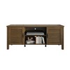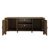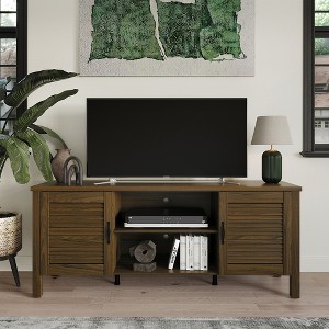 Embrace the charm of the past with our medieval-themed TV stand, designed to bring a nostalgic atmosphere to your home. Featuring distinctive louvered cabinet doors, this stand exudes vintage elegance while offering modern functionality. Constructed from a combination of solid and engineered wood, it delivers both durability and timeless appeal. The 60-inch top surface provides ample space for your TV and decor, while two open central shelves with integrated cable management holes keep media devices organized. Two spacious cabinets, complete with sleek black handles, offer additional storage for your essentials. Supported by sturdy legs and center support legs for optimal stability, this stand is available in Sanremo Light Oak, Grey, and Brown, effortlessly blending into various interior designs. With easy-to-follow assembly instructions and shipped in one box, this piece is a seamless addition to any room.