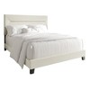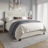 - The headboard is upholstered in 100% polyester linen fabric, known for its durability and easy maintenance, ensuring lasting quality.