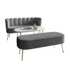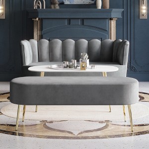 Elevate your living space with this modern 3-piece living room set, featuring a sleek sofa, a versatile bench, and a chic coffee table. Designed to suit any décor style, this set combines functionality with elegance. Crafted primarily from solid wood, the sturdy golden metal legs add a touch of sophistication and durability. The coffee table is perfectly proportioned to complement the sofa and bench for a harmonious aesthetic. Ergonomically designed for maximum comfort, the sofa and bench are padded with high-density foam and upholstered in skin-friendly velvet, available in stunning colors: Light Pink, Black, Navy Blue, Silver Grey, and Light Grey. Assembly is a breeze with included instructions, and the entire set ships conveniently in one box for effortless delivery. Transform your living room into a haven of style and relaxation!