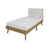 - The bed's headboard panel is upholstered with linen fabric and foam-padded for enhanced comfort and support
