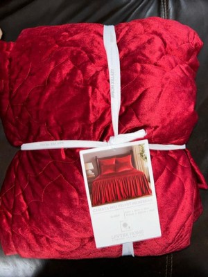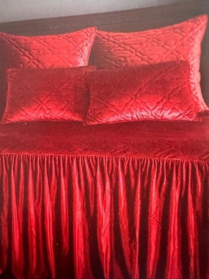 The Caserta Bedspread by Birch Hill is inspired by antique European inspired wallcoverings and tapestries. Offered in classic red, this design will immediately transform your bedroom. This bedspread features a medallion stitched pattern rich velvet on the front, reversing to solid vibrant red on the back. The Bedspread has a velvet front and microfiber back, filled with a cotton-rich filler, and is machine washable. Enjoy this for years to come!