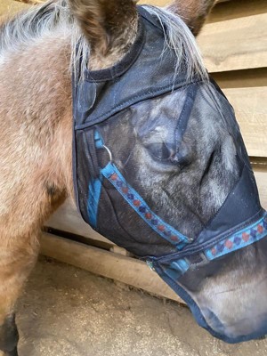 This is a wonderful lightweight, cool mask, albeit not too sturdy. I like that the eye darts are far enough apart for my horse's widely-spaced eyes. But the other day, I nearly smothered him! I had not noticed how bad those little circles of dirt that accumulate opposite the nostrils on the nosepiece from my horse breathing in and out had gotten. We were trotting along, and suddenly my horse began to grunt and slow down. I let him stop and he madly rubbed his nose on his leg. I realized to my horror that the soft mesh fabric, blocked with dirt exactly where his nostrils are, was being sucked over his nostrils with every inhale he took, effectively not letting him breathe! Don't be a dummy like me! Keep the mask clean.