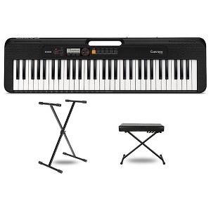 This kit includes:Casio Casiotone CT-S200 61-Key Digital KeyboardIn 1980, Casio made music creation available to everyone, everywhere with the very first Casiotone portable keyboard. The CT-201 was the first electronic keyboard with full-size keys that anyone could afford. It launched a legacy of giving musicians of any age, budget or skill level the innovations that help them sound their best. Now, nearly 40 years later, Casio proudly presents the next generation of Casiotone keyboards.Featuring 400 tones and 75 rhythms, the Casiotone CT-S200 is the perfect first step, the perfect gift and the perfect way to have fun making music. The ultracompact CT-S200 lets make music wherever and whenever want. Just pop in six AA batteries, grab the built-in carrying handle and take inspiration to go.Compact and portableThe ultracompact CT-S200 lets make music wherever and whenever want. Just pop in six AA batteries, grab the built-in carrying handle and take inspiration to go.Tones and rhythmsExplore a variety of great sounding Tones and accompaniment Rhythms with an easy-to-read LCD display and simple controls. Press the "My Setup" button to quickly get to favorite Tone and Rhythm.Dance Music ModeDance Music Mode lets easily create and remix EDM tracks. Select a style, and use the keys to trigger drum loops, basslines, synth parts, effects, transitions and more.Built-in speakersUse the built-in speakers to share with friends, or plug in headphones for quiet play at any time. The 1/8" audio input lets play along with music from favorite device.Chordana Play appConnect to the free Chordana Play iOS/Android app and take music further, learning how to play favorite songs from downloaded MIDI files. The class-compliant USB port connects to any Mac/PC/Android device with no drivers needed.Musician's Gear KS-505-MG Padded Piano BenchThe Musician's Gear KS-505-MG padded piano bench has an X-bracing with black finish, adjustable height in three increments. The faux leather seat is generously padded.Proline PL100 X-Braced Keyboard StandThe PL100 keyboard stand is a metal X-stand with a clutch mechanism that won't wear out over time. Proline's sturdy keyboard stands support medium to full-sized keyboards, as well as DJ gear and mixers. Featuring unique, adjustable rubber feet for wobble-free stability and a knock-down design for a small footprint when disassembled, the PL100 will support gear in the studio or on the road.