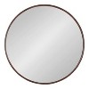 Create a decorative-yet-functional wall display with this trendy round mirror from Kate and Laurel. The Caskill mirror provides your home with plenty of light and dimension, standing at 30 inches tall by 30 inches wide for a convenient, oversized wall accent. Adding a mirror to your wall decor allows your smaller spaces to appear larger, reflecting and spreading light throughout the area. The Caskill round mirror offers homeowners a chic look, featuring a refined bronze finish on its minimalist profile. It looks excellent in any room: feature the Caskill as a modern glam bathroom vanity mirror, over a console in your entryway, or above the mantle or sofa in the living room. It even looks beautiful as a secondary accent to your headboard in the master bedroom. Regardless of where and how you decide to use the Caskill round mirror, it offers a minimalist aesthetic with convenience. This mirror hangs in a matter of seconds with metal D-ring hangers secured to the back, making your new wall accent ready to use right out of the box.