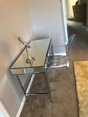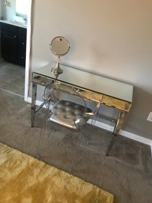 Chair is perfect. Using it to go with my new vanity table. No issues. No scratches. Pretty sturdy. Greta price. Best part.... no assembly