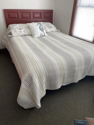 [This review was collected as part of a promotion.] Levtex Home’s Caspian Sea Natural Quilt Set comes with the quilt and two shams. The fabric is 100% cotton. This is a neutral set that can easily blend into any room. The stitching is even with no loose threads.