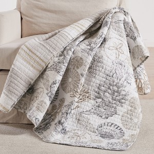 - LEVTEX CAPIAN SEA NEUTRAL QUILTED THROW: This quilted throw is made from a coastal pattern. Perfectly sized at 50x60in., the Capian Sea Neutral throw is so versatile. Drape it at the end of your bed or on your favorite, cozy chair; snuggle up with it in front of a fire in winter; or throw it over you just as the sun goes down as you enjoy a cool Spring or Summer evening outdoors.