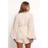 Step out in style with the Cassian Belted Romper in Tan Swirl. Featuring a flattering V neckline and long sleeves with elasticized cuffs, this romper is as comfortable as it is chic. The swirl print adds a bold, modern edge, making it a standout piece for both casual brunches or nights out.