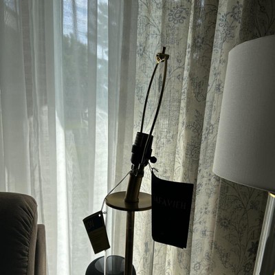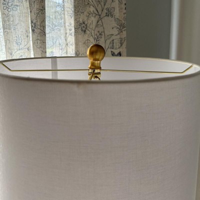 Great, modern lamp! Sleek shape and pretty brass detailing. I was looking for a tall lamp and this definitely fits my space. Arrived quickly and very well packaged.