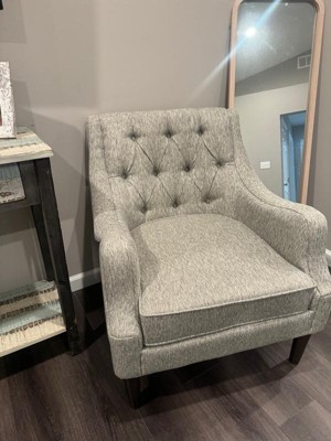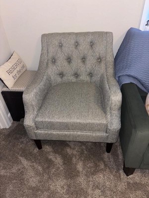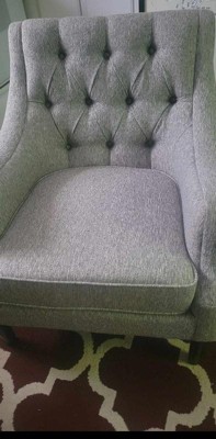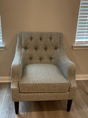 [This review was collected as part of a promotion.] This accent xhair is a stylish addition to any room. Its button tufted back give it an elegant look that matches well with both modern and classic decor. The chair is comfortable to sit in, with a firm cushion that provides good support. Its sturdy construction makes it durable, and the fabric feels nice to the touch.