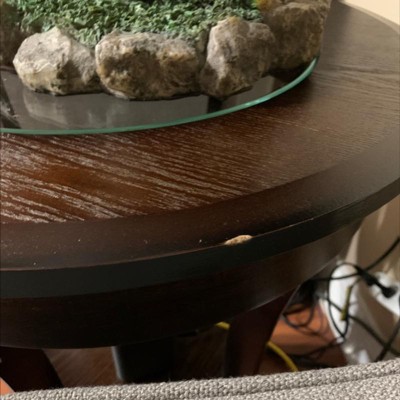 Cassie Round Accent Table with Glass - Cappuccino - Winsome: Flared Legs, Wood Composite Shelf, 27" Height