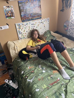 [This review was collected as part of a promotion.] This bud the best kids comforter I’ve ever felt. Both the pillow and comforter have the same two sided fabric scheme. One side has a soft outdoor animal theme. The other side is this soft Carmel colored furry bliss. It’s the most comfortable fabric I’ve ever felt