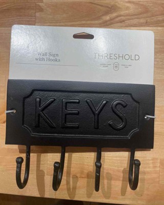 Cast Aluminum Key Sign with Hooks Black - Threshold™: Elegant Entryway Welcome Display, 4-Hook Organizer