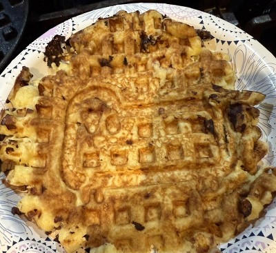A: The waffles produced by this maker feature whimsical sheep silhouettes in the center.