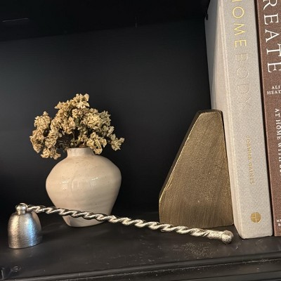 Prevent damage from wax drippings using this Cast Metal Candle Snuffer from Threshold™ designed with Studio McGee. Made of silver tone metal, this candle snuffer features a bell-shaped snuffer that helps gently extinguish the candlelight without any mess and a twirl handle for an elegant touch.
