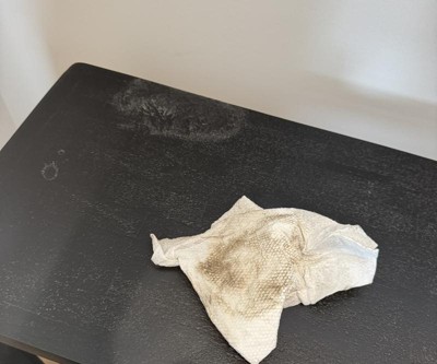 Took this out the box and it was extremely dirty. Those two stains at the top left did not come off even after wiping it. Also, the top part of it was not finished. The pain job didn’t match the bottom piece and it was missing a few coats.