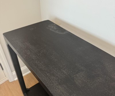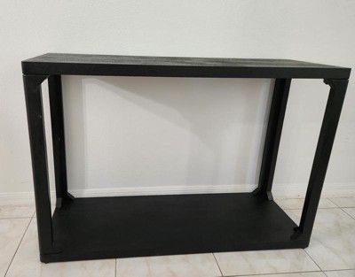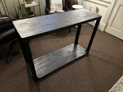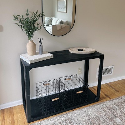 A: The console table features a functional and stylish design with a solid black finish.