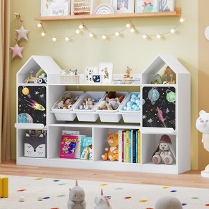 - 🌳【 Enchanting Castle and Creative Canvas 】Transform playrooms into magical kingdoms with our castle-themed storage shelf, now featuring dual side blackboards! This enchanting design sparks imaginative play while the writable surfaces invite endless doodling and learning. It’s not just storage—it’s a whimsical decor piece that fuels creativity and adventure.
