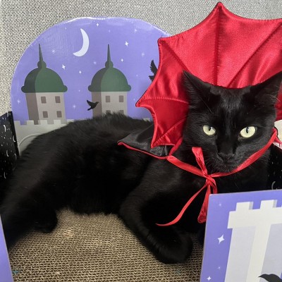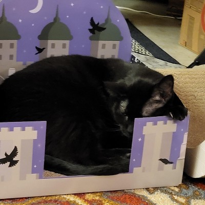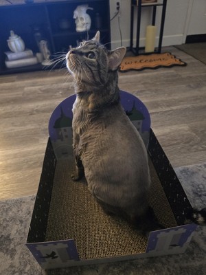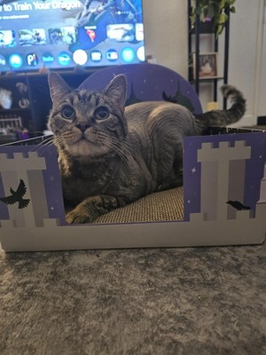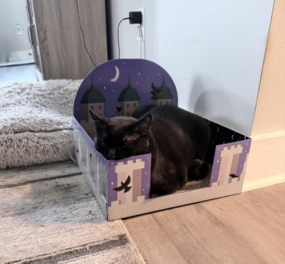 Present a fun seasonal gift to your pet with the Castle Theme Cat Scratcher Pad from Boots & Barkley™. Designed in the shape of castle, this cat scratcher pad has a printed pattern featuring half moon, black crow and other prints, making it a perfect pick for Halloween or any other occasion. Made of cardboard, it helps satisfy their scratching instincts.