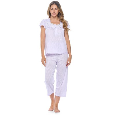Casual Nights Lace Trim Women's Short Sleeve Capri Pajama Set - Dot Purple - X-Large