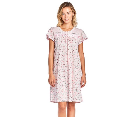 Super light and comfortable 55% cotton blend knit in beautiful floral printed lounger sleep shirt nightdress, Length measures approx. 37-39"