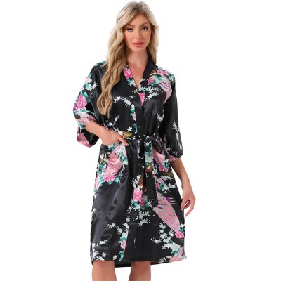 • Floral print Long sleeve bathrobe with V-neck neckline and side seam pockets, Easy front zip closures measures 28, Length measures approx. 39” Inches may vary according to size