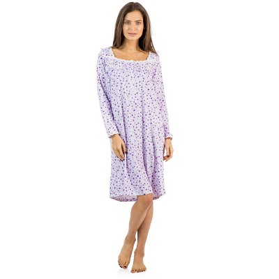 Casual Nights Women's Long Cotton Knitted & Lace Henley Nightgown - Lilac - Medium