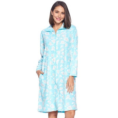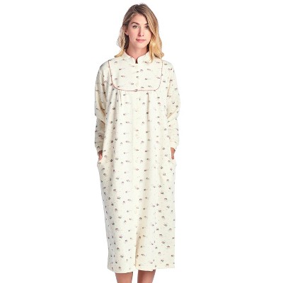• 7 Button down closures , Mid calf length measures approx. 44” Inches long from shoulder to hem, Lightweight comfort style housecoat perfect to lounge around the house, curl up on the couch or to sleep in