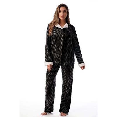 Size recommendation: Size Medium (4-6) Large (8-10) X-Large (12-14) XX-Large (16-18), Order one size up For a more Relaxed Fit Hit the sack in total comfort with these Soft and lightweight cotton blend Pajamas in a fun dot pattern elevates the coziest pajamas you'll ever own from basic to blissful, Pant has an elastic drawstring waist for easy pull on, inseam length approximately 30, Shirt Features: Long Sleeves, V-neck, open pocket, Button closure, Lace and ribbon Trim for the extra feminine touch. A comfortable straight fit perfect for sleeping or lounging around