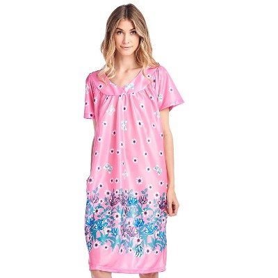 Casual Nights Women's Round Neck Mu-Mu Housecoat Lounger - Pink - Medium