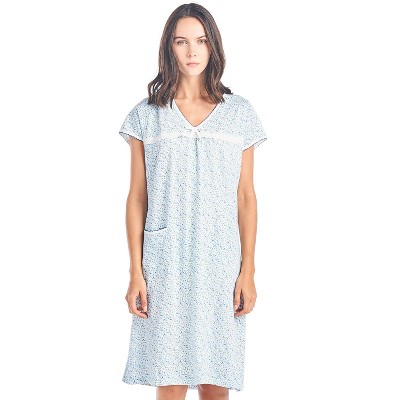 Please use our size chart to determine which size will fit you best, if your measurements fall between two sizes we recommend ordering a larger size as most people prefer their sleepwear a little looser.Medium: Measures US Size 6–8, Chests/Bust 35”-36Large: Measures US Size 10-12, Chests/Bust 37”-39X-Large: Measures US Size 14-16, Chests/Bust 39.5”-41XX-Large: Measures US Size 16-18, Chests/Bust 42”-443X-Large: Measures US Size 18W-20W, Chests/Bust 46”-484X-Large: Measures US Size 22W-24W, Chests/Bust 50”-52This Smocked Knit Short Sleeve Nightgown from Casual Nights sleepwear is Soft and lightweight in a feminine border floral pattern with beautiful fancy smocked and lace detail, Sleep dress Features 5 Button closure, short cap sleeves. Gown measures 40 from shoulder to hem. A comfortable fit perfect for gifts, sleeping or as a gown to lounge around as a house-dress. Beautiful enough for special occasions, yet comfortable enough for every day.